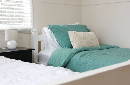 The house has four cosy bedrooms, two of them with queen-sized beds, another one with a single bed that is very comfortable, and a fourth one with two single beds.