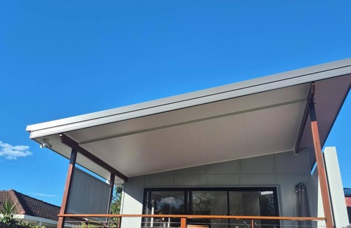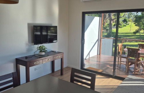 Beautiful new 2 bedroom guesthouse, modern bathroom, kitchen and deck overlooking the beautiful Ocean Shores Golf Course - whether you play golf or not this cabin is in a perfect position minutes away from the stunning local beaches, eateries, river and 10 minutes to Byron Bay.
