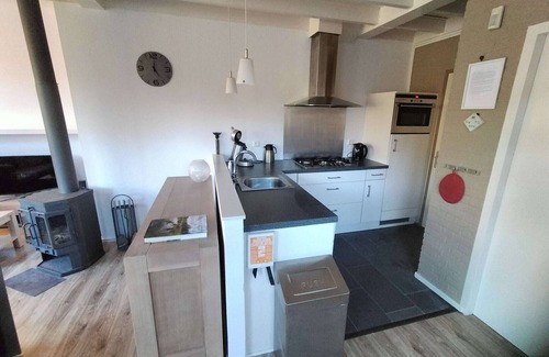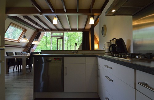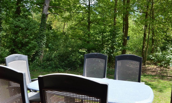This bungalow is extra attractively furnished with a cosy wood-burning stove, an open kitchen, lovely armchairs and a PlayStation game console. This, combined with its location on the edge of a small holiday park overlooking the forest, makes it a great place to unwind.