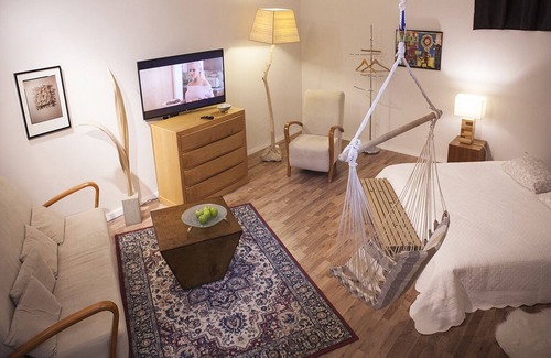 A lovely basement studio apartment with large window and plenty of natural light. Designed and decorated by one of Israel’s leading interior designers most of the furniture is handmade . We offer our guests a restful night on a king size bed and a50” flat 4k Tv with Netflix, The apartment has a small kitchen with fridge, microwave, toaster , kettle and coffee machine. The apartment is very comfortable and spacious,45 sq.m. With a 2.8m high ceilling.