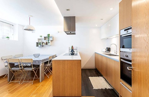 This four-bedroom house is situated in the idyllic area of Marylebone. Located on the floor, this beautiful Central London house can comfortably accommodate up to nine people. The smoke-free property features a living room, four bedrooms, four bathrooms, and a kitchen.