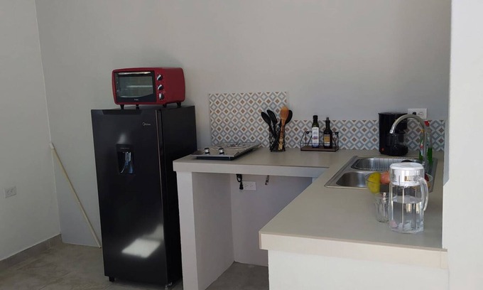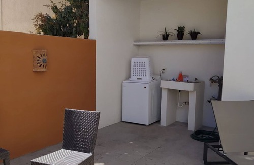 Welcome to our cozy and fully furnished apartment in San Jose del Cabo! Enjoy a bright kitchen and dining area, a spacious bedroom with a king-size bed, and a large bathroom with a walk-in closet. Take in stunning views of San Jose all the way to the ocean from the comfort of your apartment. Relax on our shared patio with sun chairs, garden furniture, and a barbecue area. Book your stay and experience the best of San Jose del Cabo!