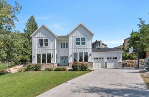 Relax in our bright, spacious 6-bedroom farmhouse tucked away on a quiet cul-de-sac in charming Provo. This cozy-yet-modern retreat blends English character with luxury touches—open fire, gourmet kitchen, WiFi, A/C, Tesla charging, and stunning mountain views.