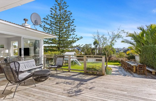 Escape to this cosy retreat in Rothesay Bay, only two minutes from the Beach. This single-level home features two queen bedrooms and one twin single bedroom, perfect for small groups or families. The open plan living, kitchen and dining all open out to a sunny deck overlooking a private garden with stylish outdoor lounge seating, dining and playground for the kids.