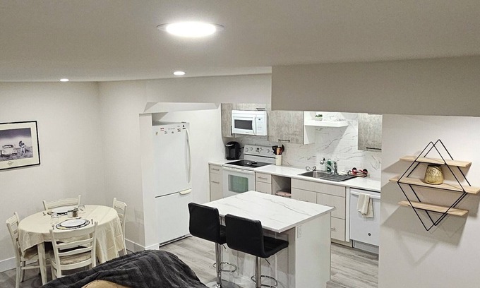 A modern basement suite that will fit all the basic needs for short term stays. It's nice, relaxing and quiet after 7:30 pm as we have 2 little girls that go to bed around that time. We are aware they make noise during the day but we try to keep it to a minimum, especially in the early evenings and mornings. There are 2 parking spots in the back alley for your convenience. The entrance is located in the back of our suite, with a pathway leading to the alleyway and parking spaces. We have our house number posted on the fence leading to the path to make it easier to find. Located close to downtown for all your shopping and amenity needs. Our place is also about a 4 minute walk to the hospital. We have a washer and dryer, dishwasher, bathtub, and basic condiments in the kitchen including coffee creamer, coffee, tea, honey, sugar, jam, and peanut butter to help make your stay easier.