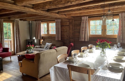 The beautiful old wood clad chalet sleeps 10 people in 5 double bedrooms located on three levels. One of the first chalets in the village, it has been totally remodelled over the years and now is a stunning marriage of 19th century reclaimed barn wood, local stone and Swiss quality of furnishings. The luxurious bathrooms and comfortable bedrooms allow for relaxing while the first floor open plan living/dining room with kitchen lends itself to entertaining and enjoying the company.