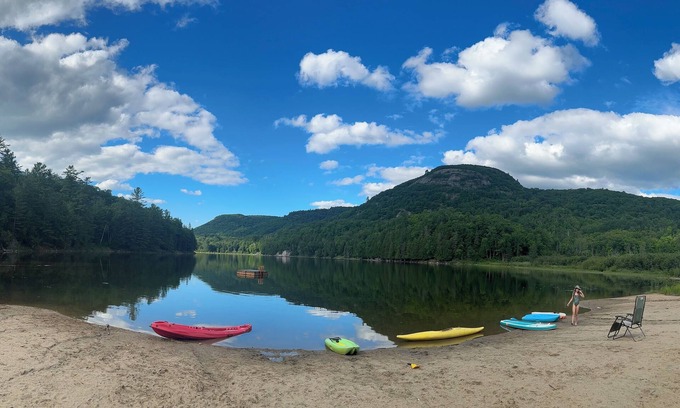 Charming cottage for rent on the Mount Saint-Marie Ski-in /Ski-out fully equipped. 3 bedrooms that can sleep 8 people. 1 hour from Ottawa. Amazing location for outdoor activities and families ( Skiing, Mountain Biking, Golf, Fat Bike trail in the winter and access to a beach by a lake at approximately 500 meters. ) WIFI+BBQ with a large patio. It is a nature bath.