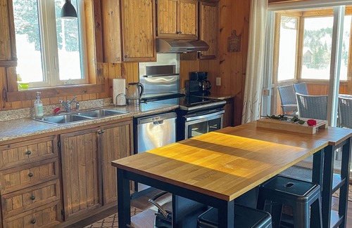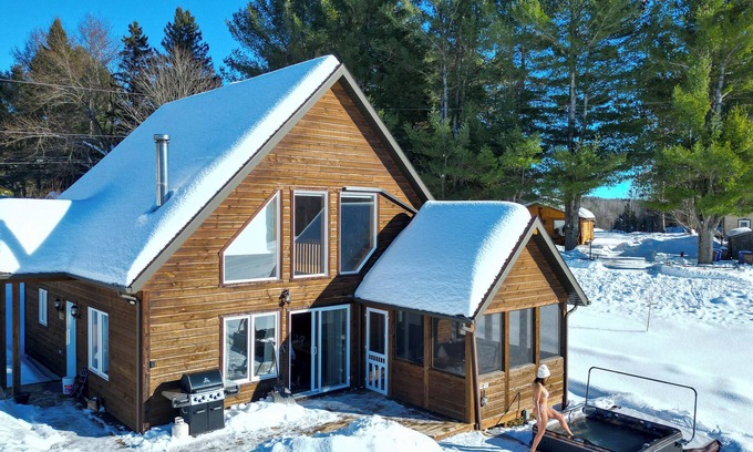 Au Gré du Vent is a delightful 4-season retreat nestled in the hills of Chertsey, just an hour’s drive from Montreal in the tourist area of Lanaudière. Offering magnificent views, this chalet features 4 bedrooms and 2 bathrooms. Enjoy the spa, fully equipped kitchen, board games, and more. In the summer, unwind on the lakeside beach, and in winter, explore the trails for snowshoeing and cross-country skiing. An ideal spot for a peaceful getaway!
