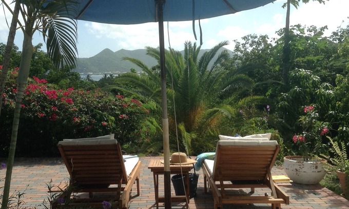 A beautiful, romantic on private road steps from David's hole in gated community in les terres basses of St Martin island (French side). The cottage nestled in a phenomenal location just a few steps from the house’s driveway gate to the sea, offering the perfect blend of seaside living and timeless Caribbean charm. This 3 bedroom and 2.5 bath with a beautiful corridor overlooking the courtyard where you can sun bath in the pergola filled with sea breezes as you are surrounded by the scent of the exotic flowers and the view of Marigot bay.