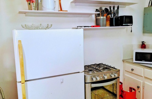 Queen size bed in bedroom plus sleeping for 2 more guests in the living room. for your comfort we are pleased to offer, cable tv, fully equipped kitchen, WiFi, a/c, covered parking. Fully fenced. Washer and dryer.