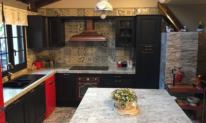 With fireplace and barbecue. Fully equipped, top quality utensils, games for everyone, adults, children and smaller rustic wood with oven, dishwasher, washing machine, hob, microwave and refrigerator. ROOFED patio with lighting in which there is a picnic area with barbecue for firewood and garden furniture. It is a patio that in winter can be closed, in summer it can be opened so that between the air and the sun! and where you can eat and spend pleasant evenings.