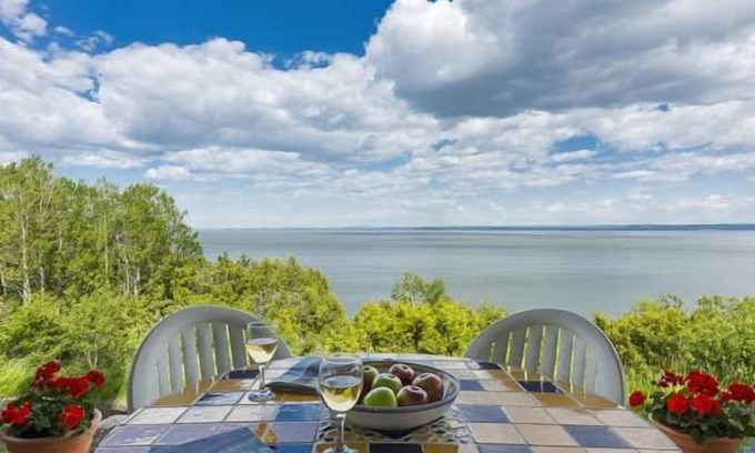 FAL-1525 is a cottage for rent in Saint-Irenee, Charlevoix. The residence can accommodate up to 6 people and features 3 bedrooms with 3 queen beds . Book this beautiful residence with Hebergement Charlevoix! This house on the banks of the river with abundant windows offering you a 180-degree view welcomes you with its dazzling panorama. She welcomes you summer and winter at the Ruisseau-Jureux estate with, as a bonus, the calm of the place and the spectacular neighborhood of the St. Lawrence River. You can hear the sound of the waves and sometimes even hear the breath of beluga whales. Take the stairs to get to the beach and admire the majesty of the landscape. You will be delighted with the sight of the south bank of the river and the sunrises that you will not soon forget.