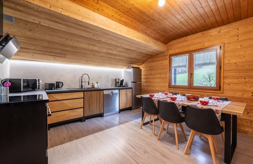 The cottage Gîte Colomban, which is situated in Thônes, overlooks the Alps. The 2-storey property consists of a living room with a sofa bed for 2 people, a fully-equipped kitchen, 2 bedrooms and 2 bathrooms as well as an additional toilet and can therefore accommodate 7 people. Additional amenities include Wi-Fi with a dedicated workspace for home office, a smart TV with streaming services as well as a washing machine. Furthermore, a table tennis table is available on the property. A baby cot and a high chair are also available.