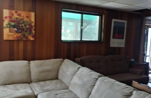 Cottage is cozy but very spacious. Lots of room to bring extended family or gather with a group of friends. Lower level at ground level walks out to patio and has separate living area and kitchen or can be used to hang out.
