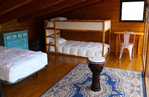 The loft-style design of the rooms means they are open, and the cabin, entirely constructed from wood, may produce characteristic sounds associated with this material.
