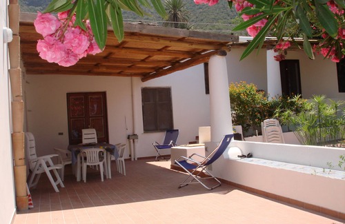 The house consists of: master bedroom complete with cassetteriera, wardrobe, bedside table, chair and air conditioning; the living room with sea view furnished with sofa bed, sofa bed, closets, drawers, lamps, chairs and air conditioning; fitted kitchen with table, chairs, cooker, electric oven, refrigerator and sink; full bathroom with a shower. There is also a bathroom with outdoor shower and washing machine. In the garden there are: a large mulberry tree, two palm trees, a large oleander, an apricot tree, a fig tree and other plants of flowers. The house is surrounded by two verandas, partly sheltered from where you can admire both the sea and the islands of Alicudi and Filicudi, is the mountain at sunset turns pink. The verandas are equipped with chairs, table and 4 chairs .The cottage has its own parking space in the shade of bougainvillea and pittosporum. The sea can be reached in ten minutes by a footpath that takes place among the shrubs and Mediterranean plants or by car with which you reach the grand staircase leading down to the sea in a very picturesque area with the stack and the arc of Punta Perciato. The population of Pollara, where is located the house, there is a summer bar, two restaurants and the Church .While shops, supermarket, bank, health service, pharmacy and altrosi located at a distance of 5 km in the village of Malfa. A bus service connects with Pollara Malfa and other municipalities of Santa Marina Salina and Leni with its ports.