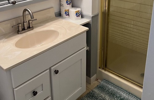 Old style cottage on Devils Lake, all sports lake! This is an old style cottage with open ceilings upstairs and a closed off bedroom downstairs along with two twins on the porch. This cottage is not perfect and has many flaws as it has been family owned since the day it was built in 1943. There were lots of memories and fun times had here! Plenty of sleeping and a stocked kitchen, dock for your boats, and a sandy bottom for the kids to swim. This home has two window AC units, one up and one down. The downstairs cools off nicely, the upstairs will be hot on hot days and cool off at night. The great thing is, most of the time the nights are open window type of weather. This house is nestled on a nice quaint street where the kids can bike or ride their scooters. Come and enjoy the summer and beautiful sunsets on Devils Lake!