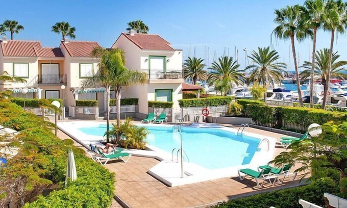 Spend your vacation in a modern two-story bungalow in the picturesque private marina. Let yourself be captivated by the magical ambience. The best way to start the day is with an extensive breakfast on the partially covered terrace. From here you can watch the Atlantic waves rock the chic boats back and forth in the harbor all day long. Especially in the evening, this spectacular backdrop creates a truly extraordinary atmosphere. You also have an unrestricted view of the great scene from the balcony. Your modern and comfortably furnished holiday home leaves nothing to be desired, with 140 square meters you have plenty of opportunities to retreat. Refresh yourself in the communal outdoor pool or take a short walk to the sandy beach. A short drive from the resort of Playa de las Meloneras is the Pasito Blanco Marina. The modern marina is located six kilometers west of Maspalomas. In addition to a few holiday homes, a guesthouse and a supermarket, there is a sailing school and a private campsite. A small sandy bay invites you to swim. Mobility: not suitable for people with reduced mobility