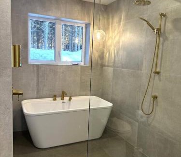 31 miles from Sainte Anne de Beaupre Basilica in Petite-Rivière-Saint-François, Cottage Quebec - L'Eclipse Nordique features accommodations with access to a hot tub. This property offers access to a terrace, free private parking, and free Wifi. Contemporary Museum of Arts is 10 miles away and Baie-Saint-Paul Museum of Contemporary Art is 10 miles from the chalet. Offering 1 bedroom, this air-conditioned chalet features 2 bathrooms with a hot tub and a bath. The accommodation has a fireplace. For those times when you'd rather not eat out, you can cook in your kitchen. Municipal Golf Baie-Saint-Paul is 10 miles from the chalet, while Baie-Saint-Paul Museum of Contemporary Art is 10 miles from the property. Québec City Jean Lesage International Airport is 59 miles away.