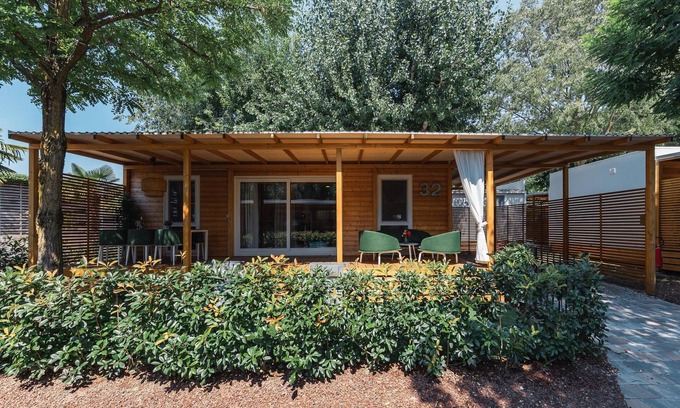 The perfect vacation spot for young and old, relaxation and adventure - everything is possible here! Between sand dunes and waves, untouched nature and an 18-hole golf course. Swimming pool, seven restaurants and bars and a marina, the holiday complex with pretty lagoon houses is located on 120 hectares directly on the Adriatic. The pretty sandy beach is over 800 meters long and offers many opportunities for fun and games! There is plenty of variety on land and water: beach volleyball, kayaking, canoeing, surfing, sailing, snorkeling, diving and boat trips, as well as a tennis court, soccer field, skate park and an 18-hole golf course. 2 pools with a whirlpool area are available: a 25-meter pool where you can swim lengths, or the pool where children can also have fun (16x4 meters). There are loungers and parasols available in the pool area, fresh towels can also be borrowed and if you're lucky you'll even get a spot on a massage table. Various restaurants, cafés and bars ensure your physical well-being. In your accommodation you will experience glamping of a special kind: enjoy the freedom and contact with nature of a campsite plus the luxury and comfort of a hotel. The holiday homes are elegantly and stylishly furnished and all have a terrace or veranda. What kind of excursion would you like to take from here? Enjoy the warm atmosphere on the sunny island of Grado? Listen to the silence in the Cavanata Valley Nature Reserve, where white wild horses graze and thousands of birds build their nests? Visit the lagoon? Take a journey through history and discover the cities of Palmanova, Aquileia and Cividale? Trieste and Ljubljana are also very close. And then Venice... always beautiful!