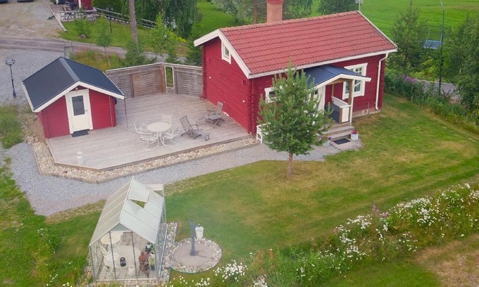 Unique accommodation in a renovated baker's house from the 1800s, built to a very high standard, in a scenic location in Tavelsjöbygden in the Umeå municipality, between Umeå and Vindeln in the Västerbotten province.