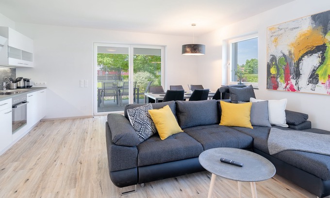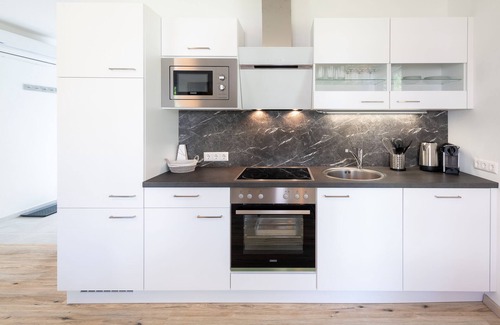 Fully equipped, modern kitchen with ceramic hob, oven, extractor fan, dishwasher, fridge freezer, coffee machine (capsules-Nespresso), microwave, kettle, toaster, tea towels and of course sufficient crockery, pans and pans.