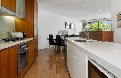 Your open plan living area features a gorgeous lounge suite, dining table, ducted air conditioning and flows out to the covered balcony. Here you can relax and unwind whilst enjoying views of the tropical gardens and swimming pools.