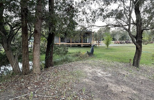 This cabin in quiet area lots bird life and the Odd kangaroos jumping around very private looking over a large dam. Close house is 500 m away "…………………. We have a fire pit