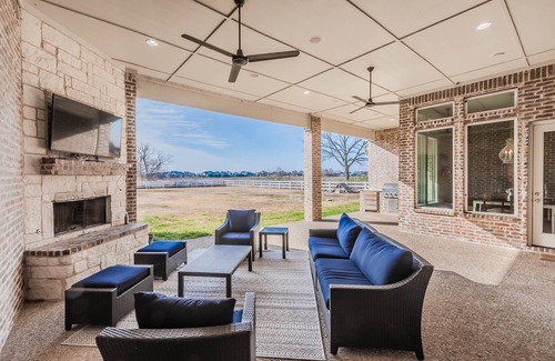 Knotty-Alder beams adorn the breathtakingly tall ceilings. These 2.2 acres in one of Texas best school districts are lined with 3-rail white horse fencing and plenty of room to stretch out and enjoy time with friends and family. Enjoy our indoor OR outdoor fireplace, built in outdoor cooking and entertainment area. Our home just feels like home.