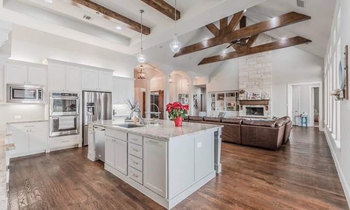 Country charm & close to it all! Sleeps 16+! Sky high ceilings & exposed beams! | House in Lucas