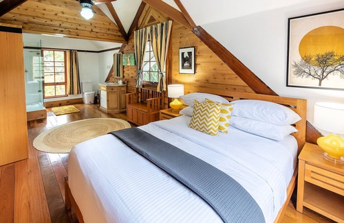 Two8seven5 property -Situated right next door to Myrtle and stone Cafe in the main drag. Take the sneaky secret pathway through our orchard to enjoy a barista made coffee and a yummy breaky. Original slab built with local hardwoods boasts a country lodge feel with boutique style rooms that give space yet privacy to its couples. Large rooms only sharing a bathroom with 1 other couple except if you score the Loft which takes you to another level with its open planned bathroom and steaky beaks quarters.