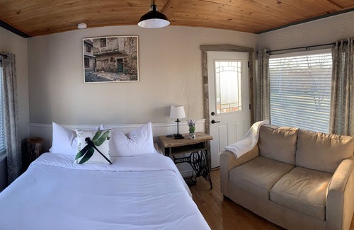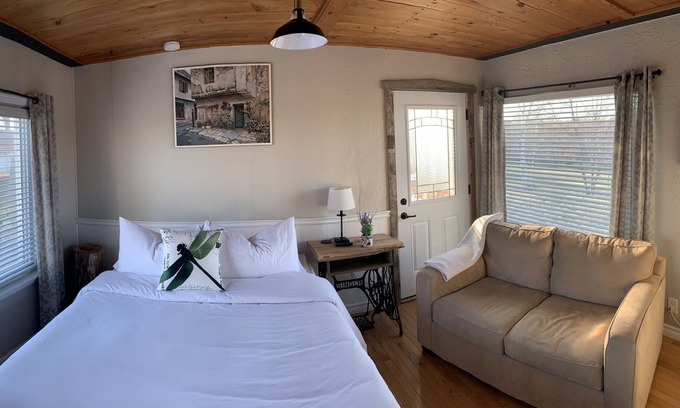 Has its own kitchen area and an extra twin loft bed.