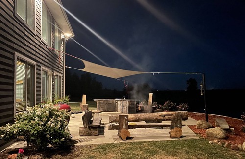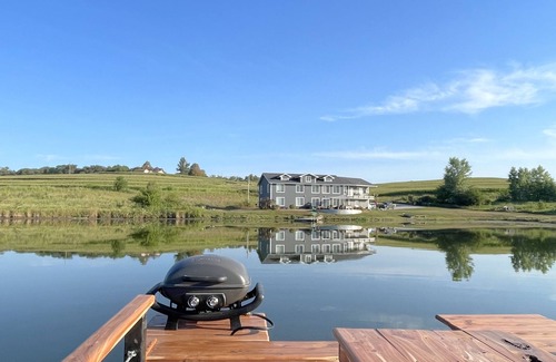 Quiet place in the country, no neighbors with plenty to do. This house has 10 bedrooms, chefs kitchen with commercial appliances, theater room with popcorn maker, large open living room, dining table for 10, and a game room with 20' shuffleboard, ping pong, Foosball, and darts. The house has 4 tvs with dish network. If the weather's nice you can go for a walk, play the 3 hole Frisbee golf, 2 horseshoe pits, tetherball, play bags, fish in the private pond, or just relax on the patio by the fire pit. Great for weddings or large gatherings as the house can sleep 28 in beds. Here is a very large home in the country with a 7 acre private pond. It has all the amenities you could ask for. This house is perfect for large family gatherings and family reunions. Great for hunting groups or a guys weekend. Ideal for a womens weekend as well with shopping and restaurants just a short 45 minute drive. Would also be great for small private weddings, yoga or meditation retreats. Or just a romantic weekend for 2. Lots of things to keep you busy including a private lake with great fishing, shuffleboard table, ping pong table, foosball, darts, horseshoe pits and frisbee golf. large dining room table is great for card games. There is a theater room with surround sound and a 10 foot screen with dish network. This is a country getaway very secluded and private property. Unfortunately with that there is no internet provided at the property. Verizon cell phones seem to work the best at the house, depending on your carrier you may or may not have internet. If you would like an early check-in or late check out, please email us in advance