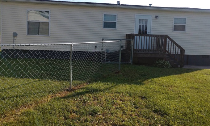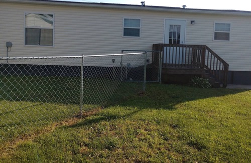 2 bedroom 2 full bath sitting on half acre. It has a full fenced in yard for your pets or children. A small storage building outback has arcade games etc while the yards have horse shoes and corn hole boards. Nestled about 3 miles from Cave Run Lake and about 30 minutes from The Red River Gorge! This quaint little home is fully furnished for your stay, all you need to bring is food!