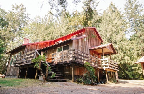 Located at the pristine Sproat Lake in the Alberni Valley, is our Rustic Retreat. Nestled amongst cedar trees, is a charming chalet-style home and hobby farm. Enjoy your morning coffee on the back patio, taking in nature views and watching friendly chickens and sheep frolic. Inside the home, you'll be greeted by vaulted ceilings, woodwork and a cozy atmosphere. The home features 4 spacious bedrooms, 2 full bathrooms and 1 half bath; plenty of space for large groups and families. Enjoy cooking in the well-appointed kitchen and dining at either the breakfast nook or large dining table.