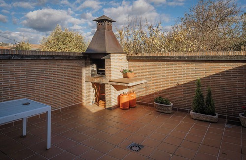 Entrada Rio Lobos I, with step-free access and interiors, is located in Hontoria del Pinar and offers beautiful mountain views. The 130 m² property consists of a living room with a sofa bed for 2 people, a fully equipped kitchen, 4 bedrooms, and 4 bathrooms, accommodating up to 10 guests. Additional amenities include high-speed Wi-Fi (suitable for video calls), television, washing machine, and a ping-pong table. A cot is also available. This accommodation does not have air conditioning. The holiday rental offers a private outdoor area with an open terrace and barbecue. A tennis court is a 15-minute walk away. Free street parking is available. A maximum of 3 pets is allowed. Smoking is not permitted on the property. The property offers handmade or homegrown products. Eight bicycles are provided. This property follows guidelines to help guests properly separate waste; more information is available on site. The accommodation is equipped with energy-saving lighting.