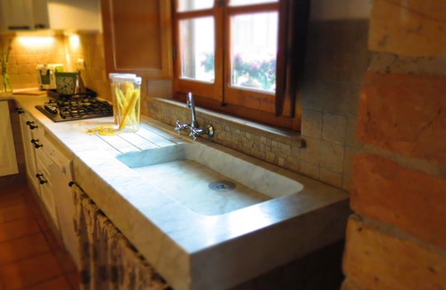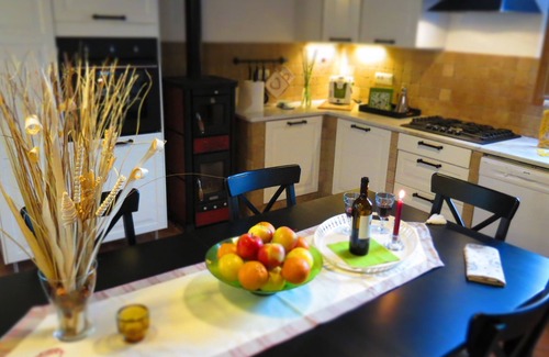 In the living area on the ground floor there is a large and bright living room with two big sofas Gathered around the fireplace and TV corner; in bricks' archway connects the living room to the fully equipped masonry kitchen caratterizzata the middle by a beautiful table That can accommodate up to 12 diners. Always on the ground floor one of the three bathrooms with shower and washing machine available to guests.