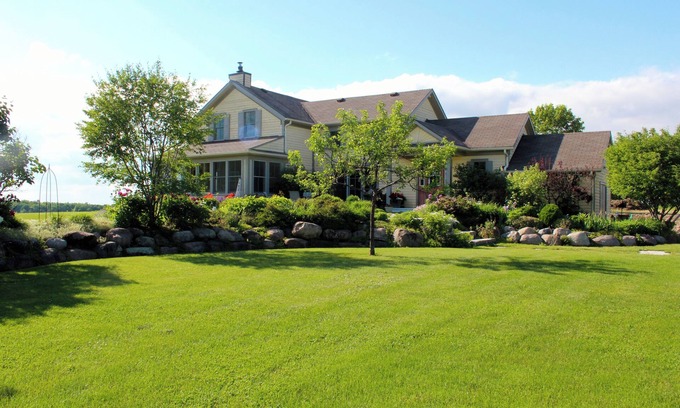 Welcome to our renovated 1858 farmhouse. Overlooking Rice Lake, it's located on 10 acres in the rolling hills of Northumberland. Come for the peace and tranquility or head out to local golf courses, walking trails, beaches, charming small towns and waterways. Play in or lounge by the heated pool, enjoy an al fresco dinner overlooking the hills and lake or just sit quietly and read a book as you hear the birds and gentle breezes.