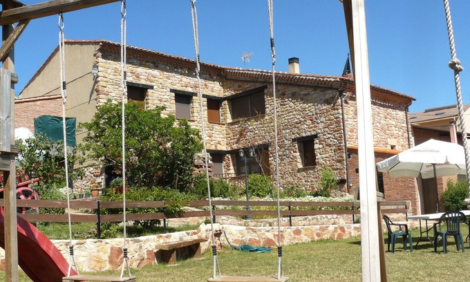 In Espeja de San Marcelino, the country house La Chimenea de Soria I y II offers excellent mountain views. The 280 m² property consists of 2 living rooms with fully equipped open kitchens, 2 washing machines, 2 dishwashers, 8 bedrooms and 4 bathrooms, so it can accommodate up to 19 people. Additional amenities include Wi-Fi, a dedicated workspace in every bedroom, and televisions in the living rooms. The house has a private outdoor area with a summer pool, a large garden with green areas, two covered terraces, a barbecue and a wood-fired oven. The host recommends exploring the Pinares Soriana area near the Cañón del Río Lobos, as well as visiting nearby places of interest such as El Burgo de Osma, the Monastery of La Vid, Salas de los Infantes, San Leonardo and Santo Domingo de Silos. There is one parking space available on the premises. A maximum of 4 pets is allowed. These country houses have a 4-star rating recognized by the Junta de Castilla y León. In Espeja, air conditioning is not necessary, as the thick walls naturally keep a pleasant temperature below 23°C throughout the year.