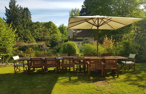 Once owned by Dr. William Oliver who invented the Bath bun and Bath Oliver! It's only 5 miles from Bath and 15mins in the car, but feels like a rural haven.. Perfect for family gatherings of up to 10 people with 5 double bedrooms and 1 other room that can take more temporary beds if required. Perfect for country walks and open fires but near enough for dinner in Bath. In the summer, relax in the large garden or visit the local pub.