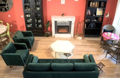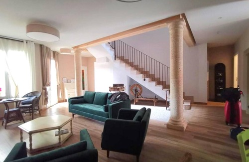 The Country House Posada Del Herrero with step-free access and interior is located in Madridejos and is perfect for an unforgettable holiday with your loved ones. The 2-storey property consists of a living room, a well-equipped kitchen, 9 bedrooms and 9 bathrooms as well as an additional toilet and can therefore accommodate 19 people. Additional amenities include high-speed Wi-Fi (suitable for video calls), a TV, air conditioning, a fan, a washing machine as well as children's books and toys. A baby cot is also available. The building in which the accommodation is located has an elevator. Private outdoor area featuring a pool, garden, open terrace, 9 balconies, and outdoor shower.