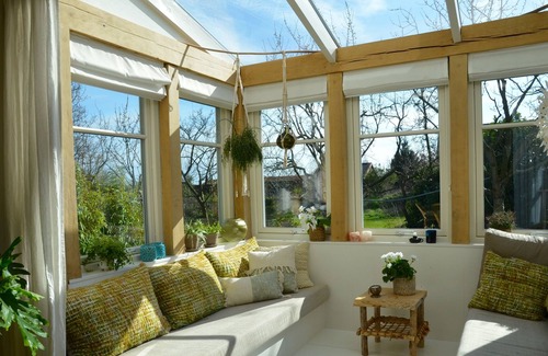 The house is surrounded by a large garden with a unique tree hut and a living veranda with covered seating, outdoor kitchen, hammock and comfortable garden furniture.