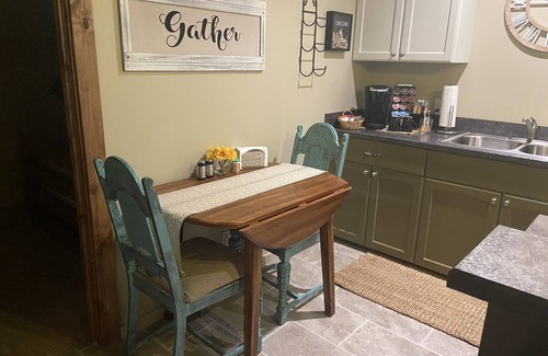 Clean, peaceful, and cozy guest apartment in private country setting. Perfect for a quiet retreat, couples get away, or a girlfriends' weekend get-together. Enjoy fantastic sunrises and sunsets, local shopping and dining on Brenham's downtown square, nearby wineries, live music venues, and of course, the world-famous Round Top Antiques Fair which is just a short country drive away! Also close to great fishing on Lake Somerville, with a reasonable commute to Bryan/College Station.