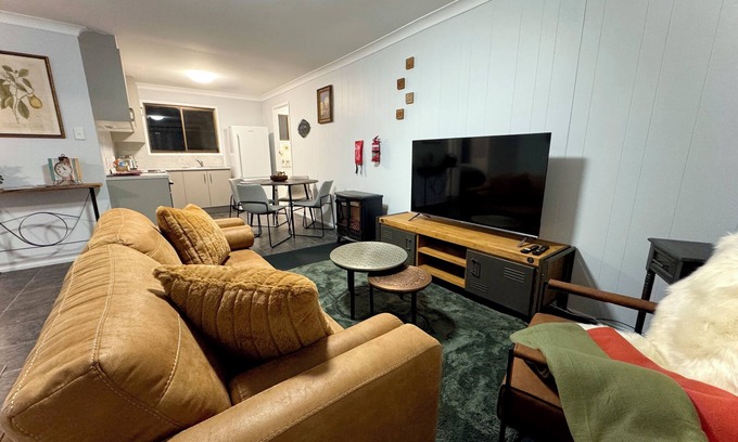The space at Nestled on Smith is best described as a Modern Rustic style with cozy, country-inspired touches. Settle into a relaxing stay in Queensland’s wine country. This stylish 2-bedroom unit is your perfect base for exploring Stanthorpe’s vineyards, local produce, and scenic national parks.