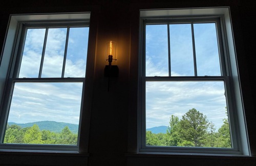 Two bedrooms are on the entry-level, which is convenient if traveling with young and old. All 3 bedrooms open directly to a full bath. The third bedroom is on the loft level. The large open loft also features a workout area with mats, weights, and bars, a desk so one can catch up on work, and a swinging day bed where one can relax with music or a good book while enjoying the magnificent view of the Blue Ridge Mountains.