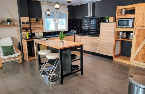 The guest suite with it's open plan design has a spacious accommodating feel which communicates directly to the rear garden and patio area. The suite has been built to a high standard with particular attention regarding the insulation materials which privides a cool living space in the summer and warm and cosy space in the winter. There are 3 bedrooms, 2 large double rooms and a smaller room with the bunk beds. The suite offers a fully fitted family sized bathroom with walk in shower, bathtub, w.c. and sink . The covered patio area has a billiard table and seating area for dining out which overlooks the garden where you can find different zones including the BBQ area, darts, exterior shower and a utility room.