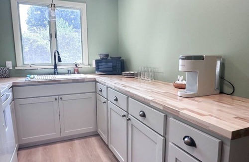 The Guest House set right behind our Main House where our small family lives. The kitchen is brand new and everything else has been updated with new flooring, paint, and furnishings. Pics of kitchen to come as its undergoing finishing touches but will be ready for your stay!