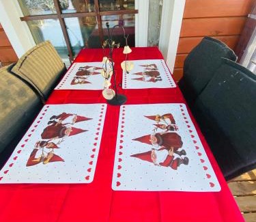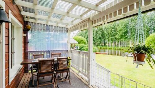 Countryside riverside cabin for both winter and summer is a recently renovated vacation home in Janakkala where guests can make the most of the private beach area and garden. This beachfront property offers access to a terrace, darts, free private parking, and free Wifi. The vacation home has an outdoor fireplace and a sauna. The air-conditioned vacation home consists of 3 bedrooms, a living room, a fully equipped kitchen with a dishwasher and a coffee machine, and 2 bathrooms with a shower and slippers. A flat-screen TV with streaming services and DVD player, as well as a CD player are available. The vacation home offers bed linen, towels, and laundry service. During warmer months, you can make use of the barbecue facilities and eat on the private balcony. For guests with children, the vacation home features outdoor play equipment and a baby safety gate. Fishing and canoeing can be enjoyed nearby. Puuhamaa - Amusement Park is 5.6 miles from Countryside riverside cabin for both winter and summer, while Hikia is 19 miles from the property. Helsinki-Vantaa Airport is 44 miles away.