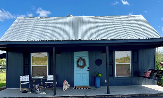 This cozy cabin is 3 miles North of Graham on Hwy 16 and was established 28 years ago. It housed a group of ladies weekly for paint class and dessert. Over the years it has transitioned into a rent house for several and now a sweet retreat. Graham is the home of The Food Truck Championship of Texas every first weekend in June, and boasts the largest downtown square in America as well as being home to Young County Arena and all the events held there. Although not next door, this cabin is only 20 miles from PK Lake. In Graham you will find plenty of boutique shopping and dining. While back at the cabin you'll find scenic views with peace and quiet. Guest are welcome to hike the trails that cover the 40 acre Brogdon Ranch, feed the horses carrots and enjoy farm fresh eggs.