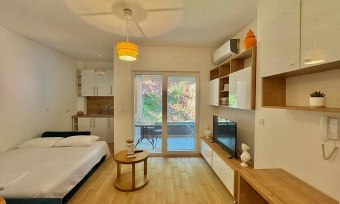 Nestled in Budva, this apartment brings it all within your reach. Fans of nature and the outdoors will love being 15 minutes by foot from Slovenska Beach and 9 minutes by car from Mogren Beach. TQ Plaza is an easy 12-minute walk away and Slovenska Plaža tourist village is also a quick 14-minute walk away.